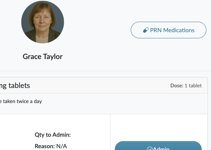 You may also need to administer any PRNs that are needed during a round, you will be able to record these as well by clicking on the PRM Medication link at the top of the screen.